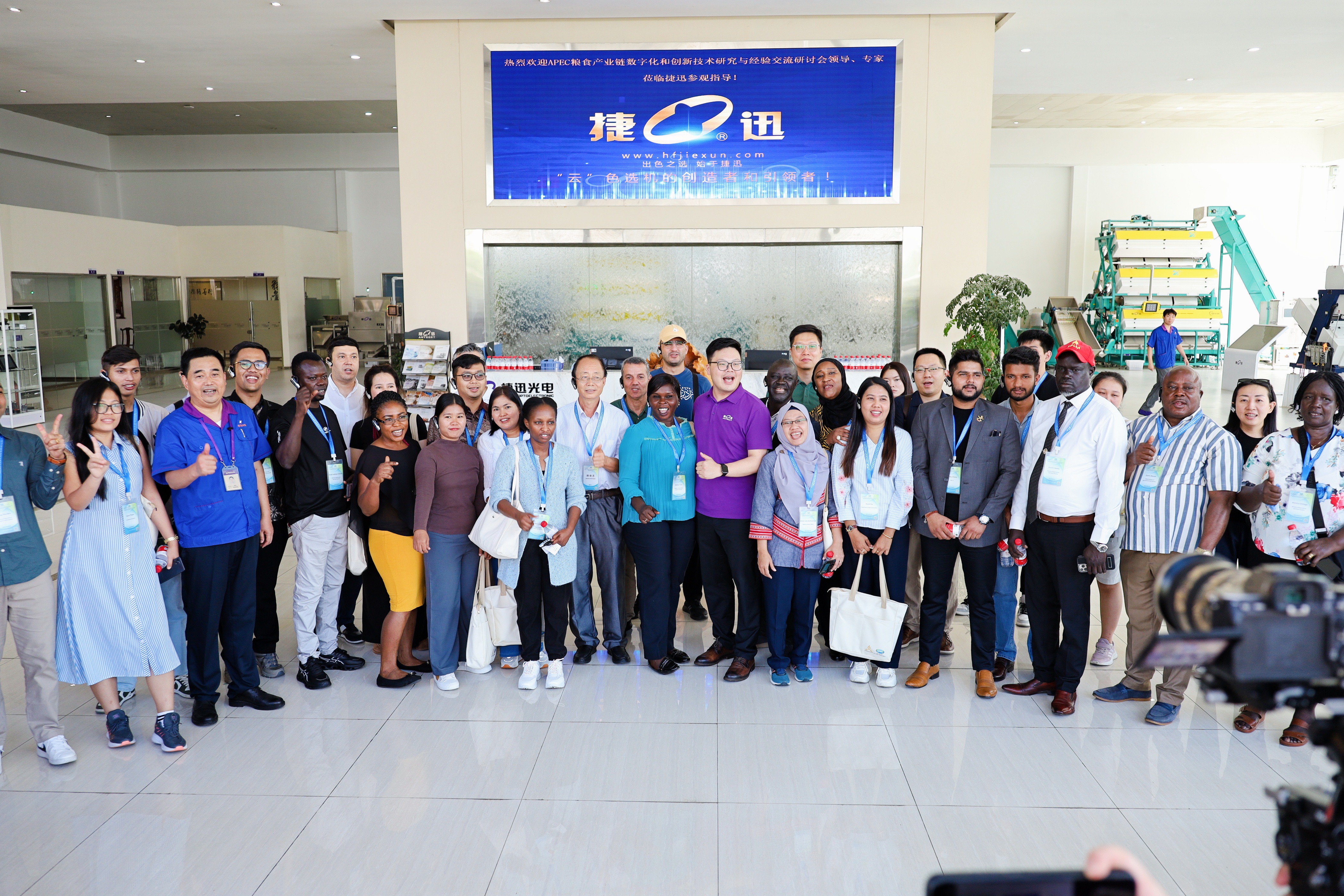 作(zuo)為大會指(zhi)定首站參訪企(qi)業,捷迅迎來(lai)APEC專項考察團。國際代表團深入捷迅數字化生產(chan)車間(jian)與質(zhi)選體驗展廳(ting),零距離感受智能制(zhi)造體系。參觀過程中,外賓高度評價捷迅云控(kong)技術:"這不僅是(shi)制(zhi)造智慧,更是(shi)改(gai)變全球糧食產(chan)業格局的系統性解決方案。"